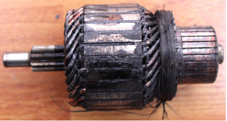 起動機轉子漆包線*緣漆高溫脫落線圈燒焦熔斷照片
